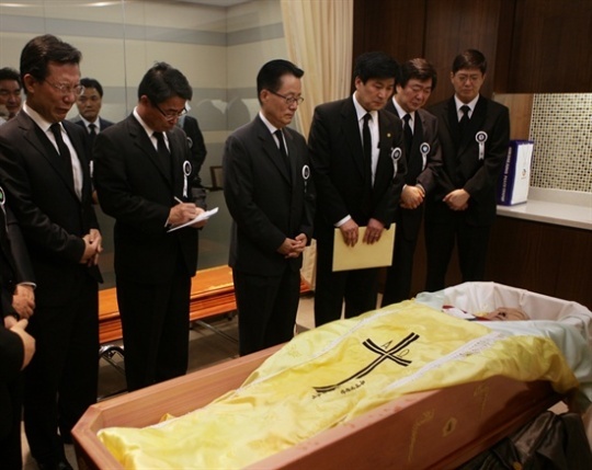▲ 김대중 대통령 서거 김대중 대통령은 2009년 8월 18일 서거했다. 입관식에서 비서진들이 마지막 보고를 하고 있다. |